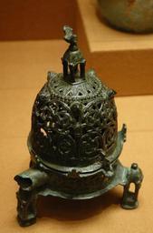 Keywords: Tripodic perfume burner Louvre E11707.jpg Tripodic perfume burner with architectural decoration Brûle-parfum tripode à décor architectural ca 700 900 AD bronze cast cm 19 13 12 7 Institution Louvre object department Islamic art 20066 object history credit line ProvenanceEvent deposit Département des Antiquités égyptiennes Département des arts de l'Islam 1992 accession number Louvre number 11707 Marie-Lan Nguyen 2006 other versions Islamic art in Egypt Ancient perfumes Tripods Egypt in the 8th century Egypt in the 9th century Abbasid art in the Louvre museum Islamic metalwork in the Louvre Perfume burners |