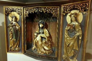 Keywords: Triptych altarpiece, Mutter Quelle der Liebe (Mother Source of Love), Germany, 16th century AD, wood, pigment, metal, plaster - Spurlock Museum, UIUC - DSC06132.jpg en Exhibit in the Spurlock Museum University of Illinois at Urbana-Champaign - Urbana-Champaign Illinois USA This work is old enough so that it is in the public domain 2015-06-14 16 51 28 own Daderot other versions cc-zero Art of Europe in the Spurlock Museum Altarpieces |