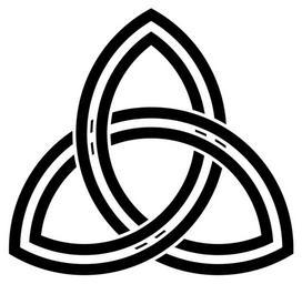 Keywords: Triquetra-Double-concentric.svg Double triquetra shape with overall interlacing but where the inner triquetra and the outer triquetra do not separately interlace Modified version of File Triquetra-Double png / File Triquetra-Double svg generated from the following PostScript source code <pre> /y 240 120 3 sqrt mul add def/z 5 2 roll arc stroke def/c1 306 240 z def/c2 186 y z def/c3 426 y z def 32 setlinewidth 1 setgray 245 -2 7 182 7 c1 245 -122 7 62 7 c2 245 117 3 302 7 c3 209 2 1 177 9 c1 209 -117 9 57 9 c2 209 122 1 297 9 c3 20 setlinewidth 0 setgray 245 -1 928 181 928 c1 245 -121 928 61 928 c2 245 118 072 301 928 c3 209 3 22 176 77 c1 209 -116 77 56 77 c2 209 123 23 296 77 c3 6 setlinewidth 1 setgray 222 52 70 c1 196 48 67 5 c1 258 57 5 74 c1 232 53 5 71 c1 222 -68 -50 c2 196 -72 -52 5 c2 258 -62 5 -46 c2 232 -66 5 -49 c2 222 172 190 c3 196 168 187 5 c3 258 177 5 194 c3 232 173 5 191 c3 showpage EOF</pre> 2009 AnonMoos thumb center fully-interlaced In the movie Shrek 3 the ship is decorated with structurally-equivalent ornaments though the geometric placement of the arcs and the artistic rendering are very different Interlaced triquetra Trefoil knot diagrams with 3-fold rotational symmetry Decorative knots Images with PostScript source code Knots and links on transparent background Outline knots and links |