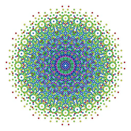 | Keywords: Trirectified 4 21 polytope Coxeter plane.svg en wikipedia 2011 October 16 Gosset 4_21 polytope graph in Coxeter plane vertices colored by multiplicity 8 16 24 32 48 64 80 96 144 192 288 06 43 19 February 2010 UTC I Tom Ruen talk created this work entirely by myself <br />Transferred from http //en wikipedia org en wikipedia Tom Ruen talk en wikipedia Tomruen Original upload log page en wikipedia Trirectified_4_21_polytope_Coxeter_plane svg 2010-02-19 06 43 Tomruen 800×800 151610 bytes <nowiki> Trirectified Gosset 4_21 polytope graph in Coxeter plane vertices colored by multiplicity I ~~~ created this work entirely by myself ~~~~~ ~~~ other_versio</nowiki> 2010-02-19 06 50 Tomruen 800×800 150460 bytes <nowiki>correct</nowiki> 2010-02-19 07 01 Tomruen 800×800 150460 bytes <nowiki> Trirectified Gosset 4_21_polytope graph in coxeter plane vertices only colored by multiplicity red orange yellow green etc 8 16 24 32 48 64 80 96 144 192 288 I ~~~ created this work entire</nowiki> Set of colored Coxeter plane graphs; many vertices |