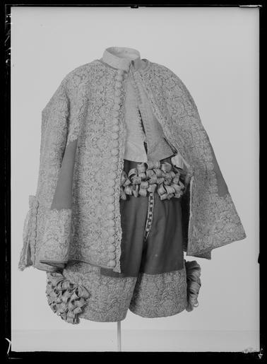 | Keywords: Tröja av mönstrad silverbrokad, ca 1650-1660 - Livrustkammaren - 70230.tif LSH artwork sv Buren av Karl X Gustav 1622-1660 vid kröningen 1654-06-06 okänd tillverkare <br/>Tröja Livplagg av innocenttyp Skuren i 2 lika stora framstycken vars framkanter följer staden 1 helt bakstycke 1 ståndkrage 10 små skört samt 2 svängda stycken för varje ärm Plagget är sytt av rik silverbrokad och har även foder av silverbrokad i annat mönster Tröjan är försedd med mellanfoder av linnelärft 20x19 tr/cm2 och planschetter triangelformade styvnader nedtill i de spetsiga framkanterna Kragen är på insidan fodrad med vitt mönstrat siden av samma sort som återkommer i tröjan till dräkt nr 3401 och har mellanfoder av linnelärft 25x21 tr/cm2 med inlagd styvnad troligen fiskben Vänsterframstycke har 21 knapphål för de bevarade 21 knapparna i höger framstycke Knapphålen är sydda med vitt högertvinnat silke 8 stygn/cm över 1 tråd Knapparna d 1 3 cm är med silverlansomspunnet vitt högertvinnat silke trind kantilj och silverlan Tre stycken likadana knappar sitter i kragen men motsvarande tränsar saknas <br/>Silverbrokaden som utgör tröjans övertyg benämnes rik silverduk Den kan beskrivas på följande sätt Vådbredd minst 50 cm 72x18 tr/cm2 Varp av tunt vitt otvinnat silke De grövre otvinnade vita inslagstrådarna bildar dels botten med silverlan i varje inslag dels blommönster av flotterade trådar med högertvinnade silverlan i varje sådant inslag Stad 1 cm 10 gröna 4 orange 12 gröna 1 vit tråd Mönsterrapport 8 8 x 8 8 cm Mönstret är symmetriskt uppbyggt med halvnaturalistiska blommor sammanhållna i rosettlika arrangemang Ärmarna är avsedda att ha den främre sömmen öppen På de motsatta bakre sömmarna har ärmarna sprund nedtill vid handleden Man har avsett att vika upp ärmensnederkant till uppslag Förutom de 10 trapetsformade skörten sitta i midjan på tröjansinsida 7 st stroppar klädda med foderbrokaden vardera med 2 hål för de 7 silverhakarna ibyxlinningen 4 sitter på den vänstra sidan och 3 på den högra Silverbrokaden som utgörtröjans foder benämnes också i de äldre inventarierna silverduk <br/>Denna har en vådbredd av minst 51 cm c a 70 x 18 á 19 tr/cm2 Mycket tunn och tät varp avvita otvinnade silkestrådar där dessa bildar botteninslag ha de försetts med silverlan pårätan De flotterande mönstertrådarna är däremot endast av vitt silke Ripsvävnad Stad 0 8 cm 12 gröna 4 gulorange 10 gröna 1 tjockare vit tråd - vävnad i tuskaft Mönsterrapport h 7 7 cm b 6 6 cm Det är ett halvnaturalistiskt blomstermönster med enkarakteristisk figur som erinrar om en fjäder Samma silverbrokad återkommer som foder itröjan nr 3389 All garnering och dekor av spetsar har sprättats bort och tröjans foder harskadats upptill Kragen har även brännskada vilket tyder på att den lämnats till utbrännning På kragens insida har man med bläck märkt plagget N 43 en åtgärd somstammar från 1789 original caption Karl X Gustavs kröning < 1654 brocade d1 - dräkt - yttermaterial material silverbrokad - linen - silk Färg vit material siden - silk Färg vit material silke - silver - silver - brocade d1 - dräkt - yttermaterial material silverbrokad LRK Karl X Gustav av Sverige Gallica 1945 Sweden - A Royal Treasury 1988-1989 Slottet brinner 1997 1648 Westfaliska freden 1998 Modelejon 2002 Les arts décoratifs sous Louis XIII 2002 Sweden and Europe 1632-1792 2003-2004 Silver - Makt o prakt i barockens Sverige 2003-2004 place of origin original filename LN_B14568_017448 67897 inventory number LRK 31304 70230 CC0 Tröja av mönstrad silverbrokad ca 1650-1660 - Livrustkammaren - 70230-negative tif <gallery caption Different images of same object > File Tröja av mönstrad silverbrokad ca 1650-1660 - Livrustkammaren - 18866 tif File Tröja av mönstrad silverbrokad ca 1650-1660 - Livrustkammaren - 10303 tif File Dräkt i rött och silvertyg som tillhört Karl X Gustav - Livrustkammaren - 65159 tif File Tröja av mönstrad silverbrokad ca 1650-1660 - Livrustkammaren - 78761 tif File Tröja av mönstrad silverbrokad ca 1650-1660 - Livrustkammaren - 53091 tif File Tröja av mönstrad silverbrokad ca 1650-1660 - Livrustkammaren - 61640 tif File Tröja av mönstrad silverbrokad ca 1650-1660 - Livrustkammaren - 35972 tif File Tröja av mönstrad silverbrokad ca 1650-1660 - Livrustkammaren - 78789 tif File Dräkt i rött och silvertyg som tillhört Karl X Gustav - Livrustkammaren - 73721 tif File Tröja av mönstrad silverbrokad ca 1650-1660 - Livrustkammaren - 70202 tif File Tröja av mönstrad silverbrokad ca 1650-1660 - Livrustkammaren - 10304 tif File Dräkt i rött och silvertyg som tillhört Karl X Gustav - Livrustkammaren - 56598 tif File Tröja av mönstrad silverbrokad ca 1650-1660 - Livrustkammaren - 1744 tif File Tröja av mönstrad silverbrokad ca 1650-1660 - Livrustkammaren - 44530 tif </gallery> Coronation of Charles X of Sweden Shirts Media contributed by LSH 2014-11 |