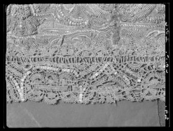 | Keywords: Tröja av sämskskinn. Förmodligen tillverkad av Jehan Beranger, Stockholm - Livrustkammaren - 2550.tif LSH artwork Friderich Feuerbrun pärlstickare Jehan Johan Beranger brodör sv Tröjan av sämskat skinn som tydligen parfymerats av s k innocenttyp med svängd midjelinje 10 skört ståndkrage och relativt korta ärmar med öppna sömmar framtill På grund av det ganska stela och styva materialet eller av att man begagnat sig av ett något urvuxet plagg har man försett det med diverse kilar och tillskarvade stycken Tydligen har man broderat de tillskurna bitarna innan de sedan fogats samman Broderiet är av något annan karaktär än kasackens och byxornas som däremot sinsemellan förefalla likartade I tröjan kan man spåra mer av stramhet Broderiet har sytts icke blott genom lädret utan också genom ett relativt grovt lärftsfoder 17x17 tr/cm2 som lagts mot lädrets insida Broderiet utgörs även här av en bård Den upptar egentligen ett strängt stiliserat mönster av 16 cm höjd och har nertill vid ytterkanterna begränsats av en repstav och härovanför av en bård som innehåller delar av vad man skulle vilja kalla lambrequinmotiv lagt med repstav Ovanför denna bård följer kompositioner med fruktkorgsmotiv samt palmettarrangering helt symmetriska Allra överst komma dock tulpanliknande blommor som böja sig varannan gång åt höger varannan gång åt vänster Rakt ovanför lambrequinmotivet sitter en liten symmetrisk 7-bladig palmett Anmärkningsvärt är att man tydligen på tröjan sedan de broderade läderstyckena monterats broderat små kantiljer utanför sömmen d v s i mönstrets fortsättning på det andra läderstycket På ärmarna har man t o m broderat ett ca 4 á 5 cm brett parti i något klumpigare utförande på det nedersta ärmstycket Här kan observeras att man genomgående glömt att göra stycket spegelvänt i förhållande till den intilliggande fruktkorgen Mönstret är för övrigt otroligt väl anpassat till bårdens bredd så att dess proportioner växla på det mest följsamma sätt Lädrets sömmar är hopkastade från baksidan med ca 6stygn/cm samt åt motsatt håll med ca 2 långa kaststygn sytt med 2-trådig högertvinnad grå lintråd I själva broderiet som sytts genom läder och linnefoder har man t ex tagit 9 stygn på en sträcka av 1 cm längd när man sytt ner paljettsträngen Man har använt olikfärgat silke grått gult brunt - med mellannyanser - samt rosa och halmgult Ett speciellt påpekande bör göras angående skörtens broderier Här har man nämligen förminskat mönstret till mindre rapport och endast broderat små blommor och ornament men likväl behållit lambrequinbården som även den förminskats Man kan lägga märke till delsatt när den 4 5 cm breda spetsen som sytts på skörtens 3 fria sidor denna sitter så långt in på broderiet att lambrequinbården helt döljs dels att man genomgående klippt fodertyget brokaden på baksidan något större än det broderade läderskörtet Dessutom har man på vänstra sidans främsta skört klippt av dess bakre sida vertikalt mitt i broderiet - man har tydligen från början broderat på ett alltför stort skörtstycke Blott en del skört har fått det yttersta snoddbandet som ingår i dekoren placerat på de 3 yttersidorna Kragen har broderier endast på höger sida ca 9 cm från framkanten räknat På vänster sida går däremot dessa ej ut från kanten utan ca 1 5 cm därifrån och omkring 8 cm åt sidan Det är en ståndkrage med ett 60-tal vertikala avsyningar över de 2 i det grova lärftsfodret 19x18 tr/cm2 horisontellt inlagda lång fiskbenen Dess söm bak ligger inte helt i mitten utan någon cm mer åt höger Upptill är den kantad med ett numera mycket trasigt grått ripsband och har haft vitt taftfoder på insidan Längs den raka framkanten knäpps tröjan med 22 st knappar ca 1 2 cm i diameter varav den 6 e uppifrån saknas Dessutom finns i ståndkragen 3 knappar av samma sort och lika många tränsar av guld- och silvertråd Ärmarna saknar nertill vid uppslagen knappar och knapphål och skiljer sig härigenom från flertalet tröjor På det högra framstycket där knapparna sitter finns en ca 4 5 cm bred knypplad guld- och silverspets med inlagda breda silverlan som nedifrån skörtets yttersta spets och uppåt räknat når till en höjd av 25 cm Härovanför vidtar en betydligt smalare spets blott 2 8cm bred Detta arrangemang verkar vara ursprungligt då man kan finna liknande tillvägagångssätt på andra tröjor På den knapphålsförsedda vänstra sidan saknas spets helt Placeringen av den breda spetsen tyder på att plagget blott skulle vara knäppt t o m det 12 e eller 13 e knapphålet uppifrån räknat Numera kan man göra den iakttagelsen att just dessa knapphål slitits vilket visserligen även skett med det 20 e som dock kantänkas härröra från tidigare utställning I övrigt har den breda spetsen tydligen suttit runt omkring alla skört Varje skört drar ca 40 cm vid de öppna ärmsömmarna i de öppna ärmuppslagens insidor runt ärmsömmarna på axelsömmarna och 38 cm på vänster framstycke och eventuellt även på kragen Numera finns spetsarna uteslutande kvar på 1 a skörtet på höger sida skörten mitt bak samt det 3 e på vänster sida i bägge ärmarnas långa sprund i ärmuppslaget på vänster ärm runt höger ärm samt vid nedre delen av vänster ärmringning på höger axel och den redan nämnda biten på höger framstycke I midjesömmen under skörten sitter på insidan 6 st byxtampar försedda med vardera 2 hål Den mellersta på höger sida är troligen senare ditsydd eftersom den är klädd med en glesare vävnad med mörkare guldlan De övriga är - som brukligt är - sydda av foderbrokaden Tröjan är fodrad med s k gyllenduk d v s guldbrokad Den har en vådbredd av minst 50 cm utan stad ca 70x20 tr/cm2 med varp av otvinnat vitt silke Inslaget bildas av tjockare vitt silke med silverlan på rätan i varje inslag sam