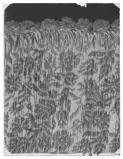 | Keywords: Tröja av svart atlas och guldbrokad, 1650-tal - Livrustkammaren - 11054-negative.tif LSH artwork Friderich Feuerbrun pärlstickare David Pärlestickare pärlstickare sv Dräkten införskaffades från Frankrike 1647 säkerligen inför drottning Kristinas kröning Många skarvar visar att dräkten kommit till användning vid senare tillfällen då den måst ändras efter ägarens tilltagande kroppsvolm Detta är en dräkt som man mycket gärna skulle vilja sätta i samband med Karl X Gustavs kröning men det finns ännu inget dokumentariskt bevis för detta dräkten ingår ev i fransyska varorna Det är en synnerligen rikt utstyrd dräkt och den har såväl i sitt broderi som i sin foder brokad en ovanligt hög guldhalt I 1671 års inventarium sägs det att dräkten utgörs av kappa tröja byxor knäband skorosor och handskar Allt av svart atlas med Gull heelöfwer borderat Numera är tyvärr dräkten inte längre så fullständig både 1671 och 1676 års inventarier vittnar visserligen om kappans existens men därefter är den försvunnen man hade redan 1671 tagit bort spetsarna av guld och 20 år senare omtalas kappan ej längre Nuvarande inventarium omtalar blott tröja byxor och 1 handske Under ett annat inventarienummer 3435 har emellertid kunnat identifieras ett dräkttillbehör nämligen ett gehäng med samma broderi Den svarta atlasen har en vådbredd av ca 53 cm utan stad Staden är 1 3 cm bred 10 gröna 10 vita 10 gröna 10 vita 10 gröna samt 5 tjocka svarta trådar - tuskaft Trådarnas antal kan variera Det hela ytan täckande broderiet är utfört i läggsöm och har en mönsterrapport av h 10 cm b 6 8 cm Det är utfört med olika sorters guldkantiljer samt paljettsträngar Längs en del kantsömmar har man sytt på ett smalt guldsnöre bestående av en tvinnad tråd omspunnen med lan Broderiet är nersytt med vitt och gult silke samt tjockare rosa lintråd Analysresultat Tråd och lan av legerat guld huvudbeståndsdelar Silver xxGuld xxxKoppar xxxZink 0Mönstret är ett stiliserat blomstermönster där ett ringformigt omtag snarast utvecklats till en krona som utdragna klockliknande blomkalkar vända sig till eller ifrån I plaggen kan man observera att broderiet uppvisar olika kvaliteter och här kan även spåras skarvar i tyget underlaget De tillskurna bitarna uppvisa en klumpigare torrare karaktär i broderiets utförande samt smärre avvikelser från det gängse utförandet Så t ex har i tröjan den lilla 5-bladiga blomman ovanför kronan sitt översta mellersta blad sytt med horisontella kantiljer istället för vertikala som det borde varit Mönstret är också gyttrigare och oredigare Kronans tinnar är omramade av i öglor lagda konturtrådar och ej som i det ursprungliga broderiet där konturen går upp och ned Mönsterrapport ca h 77 mm b 58 mm Tröjan av innocenttyp är sydd med 2 framstycken som utökats såväl upptill på axelpartiet som utefter ärmringningen och längs sidosömmen med tillsatta bitar I ryggen har skarvstyckena infogats längs en mittsöm ursprungligen kunde ryggstycket ha varit helt Nu ligger emellertid på ömse sidor mittsömmen en smal blott 1 5 cm bred skarv Likaså har man även baktill gjort tröjan något längre genom skarvar utefter axel- och halsringningarna Ärmarna har bara utvidgats obetydligt genom en skarvad remsa utefter underärmstyckets bakre övre del samt på bägge styckena nertill utefter ytterkantens söm ärmsprundets sida ca 27 cm Kragen har klippts upp på samma sätt som ryggstycket så att intill mittsömmen 2 små skarvstycken ligga på ömse sidor synbarligen även placerade upp- och nedvända Tröjan har 10 skört och i midjesömmen sitta på insidan 8 st byxtampar vardera med 2 hål Fodret utgöres av guldbrokad med svart botten Det har en vådbredd av minst 47 cm ev ca52 x 14 á 15 tr/cm2 Det är en ripsvävnad med varp av svart otvinnat silke Inslagen är 14 st med gult silke högertvinnad med guldlan samt 14 st med gult silke högertvinnad med guldlan samt 14 st svarta med guldlan på rätan Stad ca 1 3 cm 8 gröna 9 vita 12 gröna 8 vita 11 gröna 6 svarta trådar - de färgade i atlasbindning de svarta i lärftsbindning Mönsterrapport h 7 7 cm b 5 8 Mönstret består av halvnaturalistiska små blomsterkvistar Analysresultat Metalltråd tvinnad med textiltråd huvudbeståndsdelar Silver xxxGuld xxKoppar xxZink 0Då fodret är mycket trasigt och slitet har man fodrat in kragen och den övre delen av tröjan med svart taft Skörten som ju också är fodrade med brokaden har fått bitar av denna på varierande led Man har givetvis velat utnyttja det dyrbara materialet till fullo I framkanten på vänster sida har tröjan en knapphålsrad med 23 knapphål 2 cm långa På motstående sida finns 22 knappar i behåll de är 1 2 cm i diameter Knapphålsraden är på undersidan fodrad med guldbrokad av samma typ som finns i byxornas fickor Nertill i framstyckena finns planschetter som når t o m det 13 e knapphålet eller är ca 22 cm långa Dessa är klädda med något grövre linnelärft än den oblekta linnelärft som utgör mellanfoder i tröjan 23x18 tr/cm2 Det finns 3 knappar med tränsar i ståndkragen Knapparna är överklädda med olika guldtrådar lan och kantiljer I midjan på tröjan har man mellan fodren lagt en avklippt stadremsa vävd randig i gult och orange med svart som ev är en avklippt stad från någon annan dräkts tyg ev den oskurna svarta sammetsdräkten nr 3421 Detta för att ge mera styrsel åt plagget Att man klippt till plaggets olika delar och beräknat sömmarnas placering innan man broderat dem visar bl a ärmarnas nedre parti som på den broderade sidan ju skulle vikas till uppslag De har alltså ej behövt broderas ända ned utan man har lämnat den svarta atlasen bar på ett knappt 10 cm brett stycke Blott mitt fram på högra sidan under knappraden finns en knypplad ca 1 7 cm bred guldspets med guldlan kvar original caption Kristinas kröning Karl X Gustavs kröning