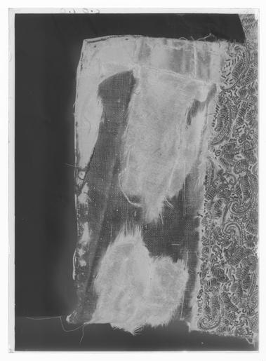 | Keywords: Tröja av svart atlas, 1650-tal - Livrustkammaren - 44367-negative.tif Detta är en dräkt som man mycket gärna skulle vilja sätta i samband med Karl X Gustavs kröning men det finns ännu inget dokumentariskt bevis för detta dräkten ingår ev i fransyska varorna Det är en synnerligen rikt utstyrd dräkt och den har såväl i sitt broderi som i sin foder brokad en ovanligt hög guldhalt I 1671 års inventarium sägs det att dräkten utgörs av kappa tröja byxor knäband skorosor och handskar Allt av svart atlas med Gull heelöfwer borderat Numera är tyvärr dräkten inte längre så fullständig både 1671 och 1676 års inventarier vittnar visserligen om kappans existens men därefter är den försvunnen man hade redan 1671 tagit bort spetsarna av guld och 20 år senare omtalas kappan ej längre Nuvarande inventarium omtalar blott tröja byxor och 1 handske Under ett annat inventarienummer 3435 har emellertid kunnat identifieras ett dräkttillbehör nämligen ett gehäng med samma broderi Den svarta atlasen har en vådbredd av ca 53 cm utan stad Staden är 1 3 cm bred 10 gröna 10 vita 10 gröna 10 vita 10 gröna samt 5 tjocka svarta trådar - tuskaft Trådarnas antal kan variera Det hela ytan täckande broderiet är utfört i läggsöm och har en mönsterrapport av h 10 cm b 6 8 cm Det är utfört med olika sorters guldkantiljer samt paljettsträngar Längs en del kantsömmar har man sytt på ett smalt guldsnöre bestående av en tvinnad tråd omspunnen med lan Broderiet är nersytt med vitt och gult silke samt tjockare rosa lintråd <br/><br/>Analysresultat Tråd och lan av legerat guld huvudbeståndsdelar <br/>Silver xx<br/>Guld xxx<br/>Koppar xxx<br/>Zink 0<br/><br/>Mönstret är ett stiliserat blomstermönster där ett ringformigt omtag snarast utvecklats till en krona som utdragna klockliknande blomkalkar vända sig till eller ifrån I plaggen kan man observera att broderiet uppvisar olika kvaliteter och här kan även spåras skarvar i tyget underlaget De tillskurna bitarna uppvisa en klumpigare torrare karaktär i broderiets utförande samt smärre avvikelser från det gängse utförandet Så t ex har i tröjan den lilla 5-bladiga blomman ovanför kronan sitt översta mellersta blad sytt med horisontella kantiljer istället för vertikala som det borde varit Mönstret är också gyttrigare och oredigare Kronans tinnar är omramade av i öglor lagda konturtrådar och ej som i det ursprungliga broderiet där konturen går upp och ned <br/>Mönsterrapport ca h 77 mm b 58 mm Tröjan av innocenttyp är sydd med 2 framstycken som utökats såväl upptill på axelpartiet som utefter ärmringningen och längs sidosömmen med tillsatta bitar I ryggen har skarvstyckena infogats längs en mittsöm ursprungligen kunde ryggstycket ha varit helt Nu ligger emellertid på ömse sidor mittsömmen en smal blott 1 5 cm bred skarv Likaså har man även baktill gjort tröjan något längre genom skarvar utefter axel- och halsringningarna Ärmarna har bara utvidgats obetydligt genom en skarvad remsa utefter underärmstyckets bakre övre del samt på bägge styckena nertill utefter ytterkantens söm ärmsprundets sida ca 27 cm Kragen har klippts upp på samma sätt som ryggstycket så att intill mittsömmen 2 små skarvstycken ligga på ömse sidor synbarligen även placerade upp- och nedvända Tröjan har 10 skört och i midjesömmen sitta på insidan 8 st byxtampar vardera med 2 hål Fodret utgöres av guldbrokad med svart botten Det har en vådbredd av minst 47 cm ev ca52 x 14 á 15 tr/cm2 Det är en ripsvävnad med varp av svart otvinnat silke Inslagen är 14 st med gult silke högertvinnad med guldlan samt 14 st med gult silke högertvinnad med guldlan samt 14 st svarta med guldlan på rätan Stad ca 1 3 cm 8 gröna 9 vita 12 gröna 8 vita 11 gröna 6 svarta trådar - de färgade i atlasbindning de svarta i lärftsbindning Mönsterrapport h 7 7 cm b 5 8 Mönstret består av halvnaturalistiska små blomsterkvistar <br/><br/>Analysresultat Metalltråd tvinnad med textiltråd huvudbeståndsdelar <br/>Silver xxx<br/>Guld xx<br/>Koppar xx<br/>Zink 0<br/><br/>Då fodret är mycket trasigt och slitet har man fodrat in kragen och den övre delen av tröjan med svart taft Skörten som ju också är fodrade med brokaden har fått bitar av denna på varierande led Man har givetvis velat utnyttja det dyrbara materialet till fullo I framkanten på vänster sida har tröjan en knapphålsrad med 23 knapphål 2 cm långa På motstående sida finns 22 knappar i behåll de är 1 2 cm i diameter Knapphålsraden är på undersidan fodrad med guldbrokad av samma typ som finns i byxornas fickor Nertill i framstyckena finns planschetter som når t o m det 13 e knapphålet eller är ca 22 cm långa Dessa är klädda med något grövre linnelärft än den oblekta linnelärft som utgör mellanfoder i tröjan 23x18 tr/cm2 Det finns 3 knappar med tränsar i ståndkragen Knapparna är överklädda med olika guldtrådar lan och kantiljer I midjan på tröjan har man mellan fodren lagt en avklippt stadremsa vävd randig i gult och orange med svart som ev är en avklippt stad från någon annan dräkts tyg ev den oskurna svarta sammetsdräkten nr 3421 Detta för att ge mera styrsel åt plagget Att man klippt till plaggets olika delar och beräknat sömmarnas placering innan man broderat dem visar bl a ärmarnas nedre parti som på den broderade sidan ju skulle vikas till uppslag De har alltså ej behövt broderas ända ned utan man har lämnat den svarta atlasen bar på ett knappt 10 cm brett stycke Blott mitt fram på högra sidan under knappraden finns en knypplad ca 1 7 cm bred guldspets med guldlan kvar original caption Karl X Gustavs kröning Kristinas kröning Karl X Gustav och Hedvig Eleonoras bröllop 1647 LRK Karl X Gustav av Sverige Modelejon 2002 place of origin original filename LN_B12775_015655 55955 inventory number LRK 19340 44367 CC0 Tröja av svart atlas 1650-tal - Livrustkammaren - 44367 tif 