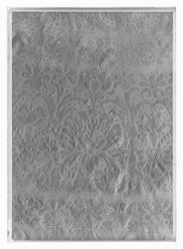 | Keywords: Tröja av vit sidenatlas. Buren av Karl X Gustav (1622-1660) vid kröningen 1654-06-06 - Livrustkammaren - 69645-negative.tif Tröjan är av innocenttyp skuren i 2 framstycken utefter vilkas framkanter staden ligger 1 bakstycke 10 små skört 2 svängda ärmstycken till varje ärm samt ståndkrage skuren i ett enda svängt stycke Längs vänster framkant går en knapphålsrad med 21 knapphål 2 cm långa sydda med vitt högertvinnat silke c a 9 stygn/cm över 1 tråd Endast 19 av knapparna är kvar på motsatta sidan De är klädda med silvertråd d 1 2 cm Ståndkragens samtliga 3 knappar är i behåll Kragen som framtill är 5 cm hög och 3 5 cm hög baktill har för knäppningen på vänster sida 3 st i flätteknik utförda silversnören Kragen är fastkastad vid halsurringningen med vitt högertvinnat silke Den är styv med mellanfoder av grovlinnelärft 16x14 tr/cm2 med insydda fiskben Dess foder utgörs på insidan av vit taft 54x52 tr/cm2 På de båda framstyckena har ytterligare ett stycke atlas med samma mönstring av 10-14 cm bredd fästs ovanpå det ordinarie tyget liksom små flikar extratyg sytts på de 2 främsta skörten <br/><br/>Tröjan är f ö hopsydd av tygstycken som inte alltid passats ihop med samma precision som den rundskurna kappan Ärmarna är som vanligt öppna utefter den svängda inre sömmen sånär som på de 14 nedersta cm som bildar uppslaget Nedtill i ärmarna finns också ett mellanfoder av grov oblekt linnelärft 17x15 tr/cm2 det gällde att få styrsel i uppslagen Tröjan är fodrad med silverbrokad dess vådbredd är minst 51 cm 66x17 á 18tr/cm2 Botteninslaget har på rätan silverlan Mot detta avtecknar sig blommönstret i flotterande trådar utan metalltrådstillsats Silket är vitt och otvinnat Staden är 0 9 cmbred 13 gröna 4 orange 11 gröna 1 vit och orange tjockare tråd Tuskaft Mönsterrapport h 7 3 cm b 6 8 cm Mönstret är detsamma som fodret i tröjan nr 3386 Tröjan är helt mellanfodrad med grov linnelärft 16x13 tr/cm2 Mitt fram i de till en spets utdragna framstyckena är planschetter inlagda som når till en höjd av 21 cm Av den ursprungliga dekoren av silverspetsar återstår nu blott ett fragment på den översta knappen Antagligen har spetsen löpt som en 4 cm bred garnering runt plaggets sömmar och kanter De har rönt samma öde som kappans spetsar I midjan sitter på insidan i tröjan 8 st byxtampar av foderbrokaden vardera med 2 hål original caption Karl X Gustavs kröning 1654 silk Färg vit d1 - dräkt - yttermaterial material siden - silver d2 - dräkt - foder material silver LRK Karl X Gustav av Sverige Tre Karlar 1984-1985 Modelejon 2002 Fest och fritid vid hovet 2003 place of origin original filename LN_B08718_011598 62161 inventory number LRK 25597 69645 CC0 Tröja av vit sidenatlas Buren av Karl X Gustav 1622-1660 vid kröningen 1654-06-06 - Livrustkammaren - 69645 tif <gallery caption Different images of same object > File Tröja av vit sidenatlas Buren av Karl X Gustav 1622-1660 vid kröningen 1654-06-06 - Livrustkammaren - 78204 tif File Tröja av vit sidenatlas Buren av Karl X Gustav 1622-1660 vid kröningen 1654-06-06 - Livrustkammaren - 52558 tif File Tröja av vit sidenatlas Buren av Karl X Gustav 1622-1660 vid kröningen 1654-06-06 - Livrustkammaren - 18316 tif File Tröja av vit sidenatlas Buren av Karl X Gustav 1622-1660 vid kröningen 1654-06-06 - Livrustkammaren - 43998 tif File Tröja av vit sidenatlas Buren av Karl X Gustav 1622-1660 vid kröningen 1654-06-06 - Livrustkammaren - 1081 tif File Tröja av vit sidenatlas Buren av Karl X Gustav 1622-1660 vid kröningen 1654-06-06 - Livrustkammaren - 1160 tif File Tröja av vit sidenatlas Buren av Karl X Gustav 1622-1660 vid kröningen 1654-06-06 - Livrustkammaren - 61119 tif File Tröja av vit sidenatlas Buren av Karl X Gustav 1622-1660 vid kröningen 1654-06-06 - Livrustkammaren - 69681 tif File Tröja av vit sidenatlas Buren av Karl X Gustav 1622-1660 vid kröningen 1654-06-06 - Livrustkammaren - 26878 tif </gallery> |