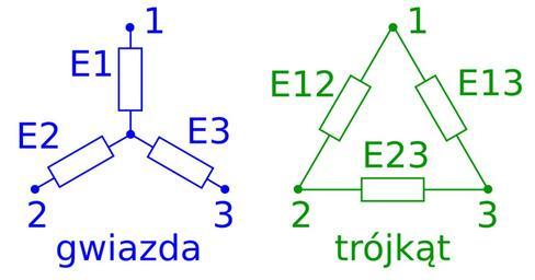 Keywords: Trójkat gwiazda.svg pl Trójfazowe połączenia typu gwiazda i trójkąt en Three-phase connections wye and delta Own Zureks 2009 Three-phase electric power