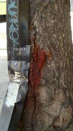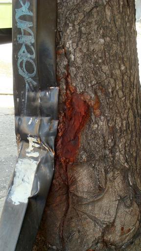 Keywords: Tronco de caobo.jpg en Mahogany trunk es Tronco de caobo chocado por un camión Puede verse el color rojo intenso de la madera casi negro por debajo de la corteza Caracas Venezuela own Fev 2009-10-04 Dominio público La foto fue tomada unos 15 días después de que el tronco de un caobo fuera impactado por un pequeño camión Este árbol ya fue impactado por varios vehículos varios años atrás y pueden verse las huellas de los distintos choques lo que indica la resistencia de la madera Swietenia macrophylla |