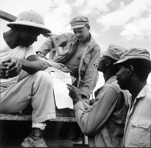 Keywords: "... troops in Burma stop work briefly to read President Truman's Proclamation of Victory in Europe.", 05-09-1945 - NARA - 531341.tif Local identifier 111-SC-262229 Department of Defense Department of the Army Office of the Chief Signal Officer 09/18/1947 - 02/28/1964 Still Picture Records Section Special Media Archives Services Division NWCS-S National Archives at College Park 8601 Adelphi Road College Park MD 20740-6001 1945-05-09 Record group Record Group 111 Records of the Office of the Chief Signal Officer 1860 - 1985 Record group ARC 440 Signal Corps Photographs of American Military Activity compiled 1754 - 1954 Series ARC 530707 Variant control numbers NAIL Control Number NWDNS-111-SC-262229<br /> Select List Identifier AFRO/AM LIST 12 General notes Scope and content File unit File unit ARC yes Other versions 100px NARA-cooperation PD-USGov VE Day African American soldiers Burma Campaign 1944-1945 United States Army in World War II Retouched images by User 1Veertje NARA TIF images with categorized JPGs |