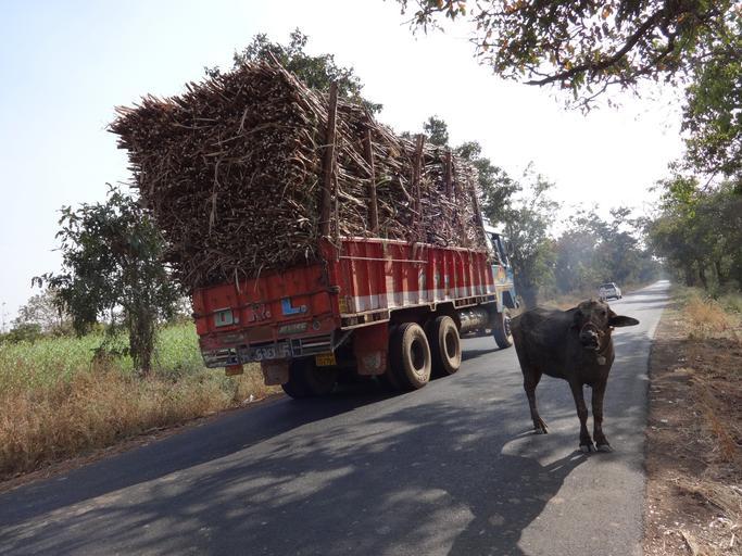 Keywords: truck overcharge cargo sugarcane cow india
