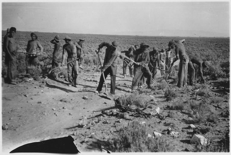 | Keywords: Truck trails. One of the maintenance crews - NARA - 298344.tif Scope and content Camp DG 4 is located one mile southwest of Springfield Idaho in the SE 1/4 Section 14 Township 4 South Range 32 East It is occupied by CCC Company 990 from Big Sur State Park 12 Monterey District California The work area of this camp lies in Grazing District No 3 It is located about one mile from the rail head Construction of the Camp was begun by the advanced detail on May 1 It was occupied by the main body May 15 Field work was begun May 30 General notes 298344 Local identifier Department of the Interior Bureau of Land Management Idaho State Office Burley District Office 07/16/1946 NARA's Pacific Alaska Region Seattle NRIAS 6125 Sand Point Way NE Seattle WA 98115-7999 other date ~ 1935 Record group Record Group 49 Records of the Bureau of Land Management 1685 - 2006 Record group ARC 378 Range Improvement Soil and Moisture Conservation Project Files compiled ca 1935 - ca 1947 Series ARC 298326 File unit CCC Camp DG-4 Springfield Idaho ca 1925 - ca 1930 File unit ARC 298327 Variant control numbers NAIL Control Number NRIS-49-BURLEYRANGEIMP-DG4SPRING-10B yes Other versions <gallery> File Truck_trails _One_of_the_maintenance_crews_-_NARA_-_298344 tif tif File Truck_trails _One_of_the_maintenance_crews_-_NARA_-_298344 jpg jpg </gallery> NARA-cooperation PD-USGov NARA TIF images with categorized JPGs |