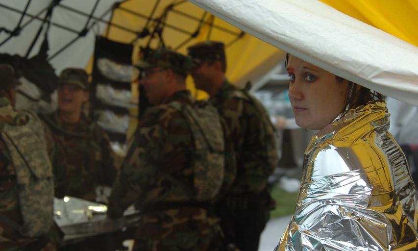 | Keywords: True Troopers DVIDS55616.jpg  en Despite the cold and the rain many volunteers where happy to assist the National Guard by volunteering themselves as a simulated casualties during a training exercise on Aug 23 Members of the National Guard from all around the state and civilian volunteers participated in a Chemical Biological Radiological Nuclear and High Yield Explosive CBRNE Enhanced Response Force Package CERF-P training in preparation for certification The Minnesota National Guard is establishing a new emergency response team to provide immediate capabilities to the governor including incident site search capability of damaged buildings rescuing trapped casualties providing decontamination and performing medical triage and initial treatment to stabilize patients for transport to medical facilities 2007-08-23 Staff Sgt Lynette Olivares https //www dvidshub net/image/55616 55616 2007-09-06 16 55 MINNEAPOLIS MN US PD-USGov Minnesota National Guard Images from DoD uploaded by Fæ |