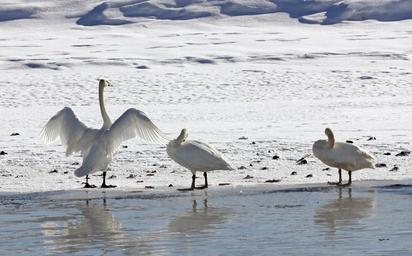 Keywords: yellowstone yellowstone national park yellowstonenationalpark birds wildlife outdoor bird animal Trumpeter swans along the Yellowstone River in Hayden Valley; Diane Renkin; December 2015; Catalog #20397d; Original #IMG_0202 Trumpeter swans along the Yellowstone River in Hayden Valley; Diane Renkin; December 2015; Catalog #20397d; Original #IMG_0202