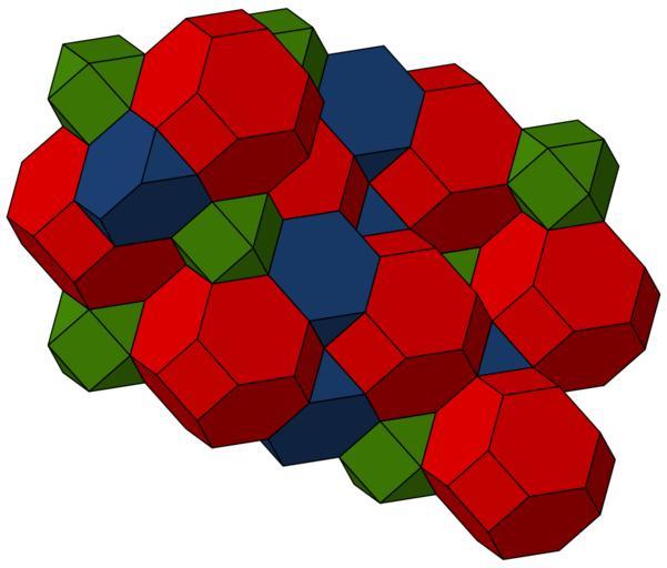 Keywords: Truncated Alternated Cubic Honeycomb.svg Part of a truncated alternated cubic honeycomb - a space filling tesselation of cuboctahedra green truncated octahedra red and truncated tetrahedra blue self-made Inkscape 2008-05-05 Inductiveload Truncated alternated cubic honeycomb