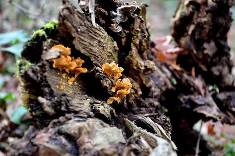 Keywords: trunk mushrooms tree trunk bark forest