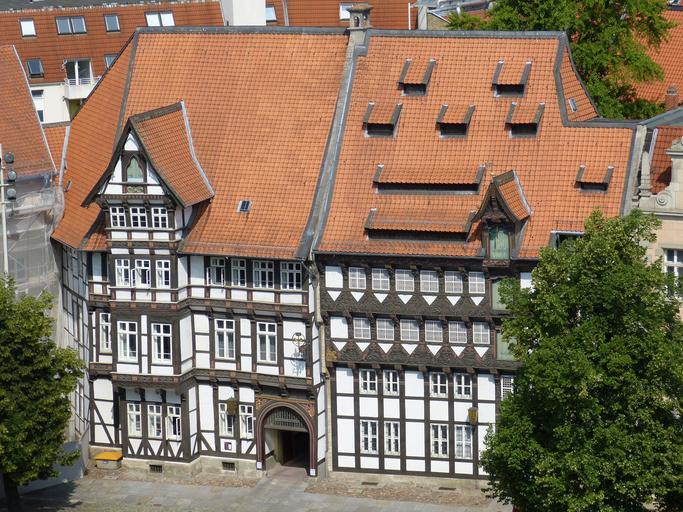 Keywords: truss fachwerkhaus home old house wood building roof architecture bar roof construction window facade entablature gable space braunschweig cathedral square dom tree