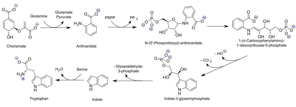 | Keywords: Tryptophan biosynthesis (en).svg Created myself using ChemDraw based on Yikrazuul's Image Tryptophanesynthesis png Created myself using ChemDraw based on Yikrazuul's Image Tryptophanesynthesis png 色氨酸合成 Tryptophan_biosynthesis png Tryptophan_biosynthesis_ zh-cn svg 2011-09-24 16 37 UTC Tryptophan_biosynthesis png Original uploader was Boghog2 at http //en wikipedia org en wikipedia Tryptophan_biosynthesis_ zh-cn svg Tryptophan_biosynthesis png Original uploader was Boghog2 at http //en wikipedia org en wikipedia derivative work Shakiestone <span class signature-talk >talk</span> derivative work RicHard-59 svg alternative File Biosynthesis of tryptophan svg Svg-chinese Tryptophan_biosynthesis_ zh-cn svg english-svg RicHard-59 Tryptophan_biosynthesis_ zh-cn svg Original upload log This image is a derivative work of the following images File Tryptophan_biosynthesis png licensed with PD-user-w 2011-09-11T12 13 35Z Boghog 4096x1371 92979 Bytes <nowiki>Reverted to version as of 12 06 11 September 2011 resolution too high to create thumb nail</nowiki> 2011-09-11T12 09 24Z Boghog 8192x2741 22742 Bytes <nowiki>higher resolution</nowiki> 2011-09-11T12 06 24Z Boghog 4096x1371 92979 Bytes <nowiki>corrected error in the third structure - removed extra carbon between the sugar and the anthranilate group</nowiki> 2009-06-07T07 20 45Z File Upload Bot Magnus Manske 3599x1214 218229 Bytes <nowiki> en wikipedia subst CURRENTYEAR subst CURRENTMONTHNAME subst CURRENTDAY Created myself using ChemDraw based on Yikrazuul's Image Tryptophanesynth</nowiki> File Tryptophan_biosynthesis_ zh-cn svg licensed with PD-user-w 2011-02-14T13 37 14Z Shakiestone 1100x400 103603 Bytes <nowiki>fix</nowiki> 2011-02-14T13 35 09Z Shakiestone 1100x400 103100 Bytes <nowiki> en Created myself using ChemDraw based on Yikrazuul's Image Tryptophanesynthesis png 色氨酸合成 2011-02-14 13 34 UTC Autho</nowiki> Uploaded with derivativeFX Biosyntheses Tryptophan |