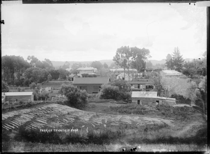 Keywords: blackandwhite monochrome outdoor photo border building architecture black and white Tuakau township, photographed by William Archer Price between 1910 and 1930. In the foreground flax fibre is laid out for drying and bleaching. In the middle distance is the railway station are yards, with the township beyond. Identifiable buildings are the Tuakau Hotel, the Creamery (middle distance by tall trees), and Tapper Bros (drapery, etc). Inscriptions: Inscribed - Photographer's title on negative -bottom left: Tuakau township 2098. Quantity: 1 b&w original negative(s). Physical Description: Dry plate glass negative 4.75 x 6.5 inches Tuakau township. Price, William Archer, 1866-1948 :Collection of post card negatives. Ref: 1/2-001514-G. Alexander Turnbull Library, Wellington, New Zealand. natlib.govt.nz/records/22325643 Tuakau township, photographed by William Archer Price between 1910 and 1930. In the foreground flax fibre is laid out for drying and bleaching. In the middle distance is the railway station are yards, with the township beyond. Identifiable buildings are the Tuakau Hotel, the Creamery (middle distance by tall trees), and Tapper Bros (drapery, etc). Inscriptions: Inscribed - Photographer's title on negative -bottom left: Tuakau township 2098. Quantity: 1 b&w original negative(s). Physical Description: Dry plate glass negative 4.75 x 6.5 inches Tuakau township. Price, William Archer, 1866-1948 :Collection of post card negatives. Ref: 1/2-001514-G. Alexander Turnbull Library, Wellington, New Zealand. natlib.govt.nz/records/22325643 |