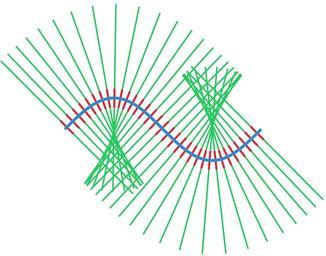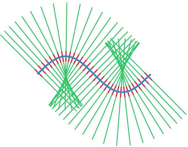 | Keywords: Tubular neighborhood.png Illustration of en Tubular neighborhood Made with en Matlab Oleg Alexandrov 03 01 1 June 2007 UTC Public domain Created with MATLAB Source code MATLAB <source lang matlab > illustration of tubular neighborhood function main f inline 'sin x ' 'x' ; will construct a tubular neighborhood of this curve a 0; b 2 pi; N 100; X linspace a b N ; consider N points in the interval a b Y f X ; the curve ll 3; length of lines perpendicular to the curve lls 0 3; smaller subsegments thin_line 2; thick_line 4; will draw lines perpendicular to the graph of Y f X at points separted by length of 'spacing' spacing 0 033; M floor spacing N ; colors red 0 867 0 06 0 14; blue 0 129 205/256; green 0 200 70/256; figure 1 ; clf; hold on; axis equal; axis off; plot the lines for k 1 N p k-1 M+2; if p > N break; end the normal to the curve at X p Y p Normal - Y p+1 -Y p-1 X p+1 -X p-1 ; Normal Normal/norm Normal ; plot X p -ll Normal 1 X p +ll Normal 1 Y p -ll Normal 2 Y p +ll Normal 2 'color' green 'linewidth' thin_line plot X p -lls Normal 1 X p +lls Normal 1 Y p -lls Normal 2 Y p +lls Normal 2 'color' red 'linewidth' 0 7 thick_line end plot the curve plot X Y 'linewidth' thick_line ; saveas gcf 'Tubular_neighborhood eps' 'psc2' </source> Images with Matlab source code tubular neighborhood Files by User Oleg Alexandrov from en wikipedia math |
