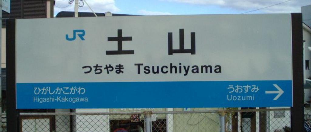 Keywords: Tuchiyama.jpg Station sign for Tsuchiyama Station 山駅駅名票 Own 2005-11-20 Nozomikobe Train station signs in Hyogo prefecture Train station signs of West Japan Railway Company Tsuchiyama Station