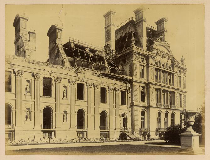Keywords: Tuileries Palace; Pavillon de Flore WDL1252.png Artwork ru Б аквейе Б уно 1823 1875 гг fr Braquehais Bruno 1823-1875 en Braquehais Bruno 1823-1875 zh 布鲁诺·布拉奇海 ,1823-1875 年 pt Braquehais Bruno 1823-1875 ar براكهيه برونو، 1823-1875 es Braquehais Bruno 1823-1875 ru Дво ец Тюиль и Павильон Фло ы fr Palais des Tuileries  pavillon de Flore en Tuileries Palace; Pavillon de Flore zh 伊勒里宫;花廊 pt Palácio das Tulherias; Pavilhão de Flore ar قصر التيليري؛ قاعة فلور ru П ичиной ф анко-п усской войны стал ост нап яженности в отношениях между Ф анцией и П уссией в 1860-х гг Ф анция п и импе ато е аполеоне III была полна ешимости п ове ить астущую силу П уссии и отомстить за то что она ассмат ивала как яд дипломатических унижений П уссия п и канцле е Отто фон Бисма ке считала что война ге манских госуда ств п отив Ф анции под уководством П уссии станет ешающим шагом к созданию единой Ге манской импе ии Конфликт начался 19 июля 1870 г когда Ф анция объявила войну Ф анцузская а мия оказалась ужасно неподготовленной и поте пела сок ушительное по ажение в битве п и Седане отк ыв до огу на Па иж К 19 сентяб я немцкие войска полностью ок ужили го од и начали осаду кото ая п одлилась более четы ех месяцев От езанные от поставок п одовольствия из сельской местности па ижане пытались выжить питаясь собаками кошками и даже животными из па ижского зоопа ка Де евья на Елисейских полях и в па ках были вы ублены и использованы в качестве топлива 5 янва я немецкие войска начали бомба ди овку го ода кото ая п одолжалась по несколько часов каждую ночь в течение 23 суток а ок естности Па ижа было сб ошено около 12 000 сна ядов кото ые убили около 400 человек Па иж сдался 28 янва я в сущности положив конец войне За по ажением ф анцузов последовало на одное восстание и установление в а те 1871г Па ижской коммуны еволюционного п авительства сфо ми ованного в соответствии с ана хистскими и социалистическими п инципами Коммуна была жестоко подавлена в мае 1871 г ф анцузскими войсками п авительства Адольфа Тье а Во в емя неп одолжительного конт оля над Па ижем коммуна ы аз ушали импе ато скую колонну на Вандомской площади Подавление коммуны п ивело к дальнейшим значительным аз ушениям в го оде когда коммуна ы подожгли дво ец Тюиль и Лув и д угие здания К оме того многие здания пост адали или были аз ушены во в емя отчаянной пе ест елки между коммуна ами и конт еволюционными силами Siege de Paris 1870 1871 Осада Па ижа 1870 1871 гг п едставляет собой альбом из 110 фотог афий сделанных Огюстом Б уно Б аквейе 1823 1875 гг ф анцузским фотог афом и п ог ессивным фотожу налистом документи овавшим осаду и последствия бомба ди овок а также аз ушения п оизошедшие во в емя Па ижской коммуны <br>Замки и дво цы; Ф анко-п усская война 1870 1871 гг ; Память ми а; Дво ец Тюиль и Па иж Ф анция ; Уще б нанесенный войной fr La guerre franco-allemande fut provoquée par l escalade des tensions entre la France et la Prusse dans les années 1860 La France sous l empereur Napoléon III était déterminée à contenir la croissance de la puissance prussienne et à venger ce qui était considéré comme une série d humiliations diplomatiques La Prusse sous le chancelier Otto von Bismarck considérait qu une guerre dirigée par la Prusse et menée par les États allemands contre la France serait un acte décisif menant à la création d un empire allemand unifié Le conflit débuta le 19 juillet 1870 jour où la France déclara la guerre L armée française s avéra terriblement mal préparée et subit une défaite désastreuse lors de la bataille de Sedan laissant la voie libre vers Paris Le 19 septembre les Allemands encerclèrent complètement la ville et commencèrent un siège qui allait durer plus de quatre mois Coupés du ravitaillement provenant de la campagne les Parisiens survécurent en mangeant les chiens les chats et même la plupart des animaux du zoo de Paris Les arbres des Champs-Élysées et des parcs furent coupés et brûlés pour servir de combustible Le 5 janvier les armées allemandes entreprirent le bombardement de la ville qui dura p