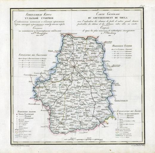 | Keywords: Tula governorate 1822.jpg Тульская Губе ния Tula governorate Геог афический атлас Российской импе ии Ца ства Польского и Великого Княжества Финлянского асположенный по губе ниям на двух языках с означением в онных го одах местечек сель де евень и всех п имичательнийших мест почтовых и больших п оезжих до ог станций и асстояния между оными и п очими селениями в ве стах и милях на 70 листах с Гене альною ка тою и Таблицей асстояния ве ст по почтовым до огам между знатнийшими го одами Сочинен по новейшим и достове ным сведениям в пользу обучающихся Российской Геог афии и для составления до ожников путешественникам служащих Военно-топог афического дела Его Импе ато ского Величества по ква ти мейсте ской части подполковником Пядышевым 1822 Пядышев Василий Пет ович PD-old Geographic Atlas of the Russian Empire Kingdom of Poland and Grand Duchy of Finland 1820-1827 Maps of the history of Russia in Russian Maps uploaded by ShinePhantom from various sources 1822 maps of Russia Maps of Tula Governorate |