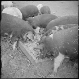 | Keywords: Tule Lake Relocation Center, Newell, California. A close up of hogs eating garbage at the temporary . . . - NARA - 536371.jpg Scope and content The full caption for this photograph reads Tule Lake Relocation Center Newell California A close up of hogs eating garbage at the temporary location of the hog farm The garbage is brought to the farm by trucks from the center General notes 536371 Local identifier 210-G-A470 Department of the Interior War Relocation Authority 02/16/1944 - 06/30/1946 NARA-Author Stewart Francis War Relocation Authority photographer Photographer 8464475 <br /> Still Picture Records Section Special Media Archives Services Division NWCS-S National Archives at College Park 8601 Adelphi Road College Park MD 20740-6001 1942-11-04 Record group Record Group 210 Records of the War Relocation Authority 1941 - 1989 Record group ARC 537 Central Photographic File of the War Relocation Authority compiled 1942 - 1945 Series ARC 536000 File unit File unit ARC Variant control numbers NAIL Control Number NWDNS-210-G-A470 Other versions <gallery> File Tule_Lake_Relocation_Center _Newell _California _A_close_up_of_hogs_eating_garbage_at_the_temporary_ _ _ _-_NARA_-_536371 tif tif File Tule_Lake_Relocation_Center _Newell _California _A_close_up_of_hogs_eating_garbage_at_the_temporary_ _ _ _-_NARA_-_536371 jpg jpg </gallery> NARA-cooperation PD-USGov Pigs in the United States California Animal husbandry in Tule Lake War Segregation Center Pig Pig husbandry in the United States California 1942 in California T Pig November 1942 in the United States Black and white photographs of animals Pig |