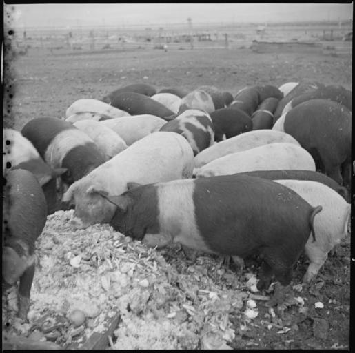 | Keywords: Tule Lake Relocation Center, Newell, California. A close up of hogs eating garbage at the temporary . . . - NARA - 536376.jpg Scope and content The full caption for this photograph reads Tule Lake Relocation Center Newell California A close up of hogs eating garbage at the temporary location of the hog farm The garbage is brought to the farm by trucks from the center General notes 536376 Local identifier 210-G-A475 Department of the Interior War Relocation Authority 02/16/1944 - 06/30/1946 NARA-Author Stewart Francis War Relocation Authority photographer Photographer 8464475 <br /> Still Picture Records Section Special Media Archives Services Division NWCS-S National Archives at College Park 8601 Adelphi Road College Park MD 20740-6001 1942-11-04 Record group Record Group 210 Records of the War Relocation Authority 1941 - 1989 Record group ARC 537 Central Photographic File of the War Relocation Authority compiled 1942 - 1945 Series ARC 536000 File unit File unit ARC Variant control numbers NAIL Control Number NWDNS-210-G-A475 Other versions <gallery> File Tule_Lake_Relocation_Center _Newell _California _A_close_up_of_hogs_eating_garbage_at_the_temporary_ _ _ _-_NARA_-_536376 tif tif File Tule_Lake_Relocation_Center _Newell _California _A_close_up_of_hogs_eating_garbage_at_the_temporary_ _ _ _-_NARA_-_536376 jpg jpg </gallery> NARA-cooperation PD-USGov Pigs in the United States California Animal husbandry in Tule Lake War Segregation Center Pig Pig husbandry in the United States California 1942 in California T Pig November 1942 in the United States Black and white photographs of animals Pig |