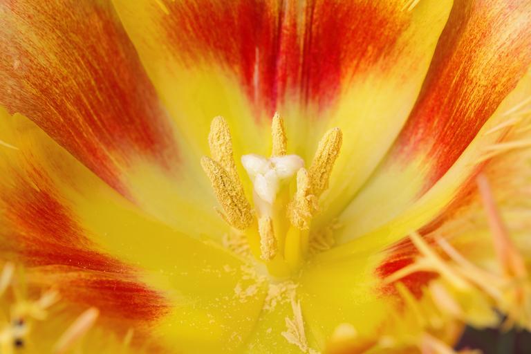 Keywords: tulip blossom bloom petals stamp spring flower plant yellow red close