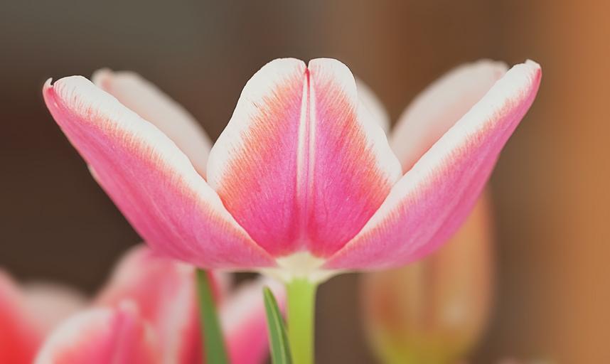 Keywords: tulip flower blossom bloom pink and white spring bloom close