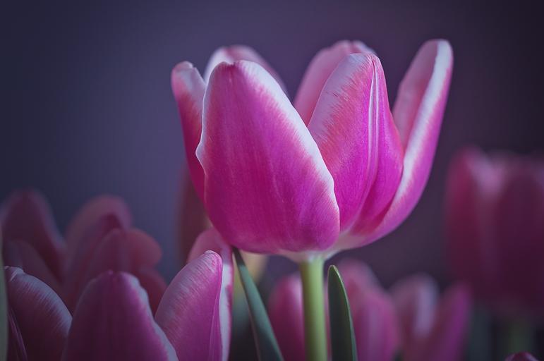 Keywords: tulip flower spring nature plant blossom bloom pink and white close
