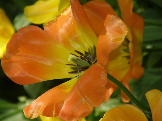 Keywords: tulip orange yellow flower blossom bloom spring tulpenbluete spring flower garden colorful bloom close yellow orange tulips