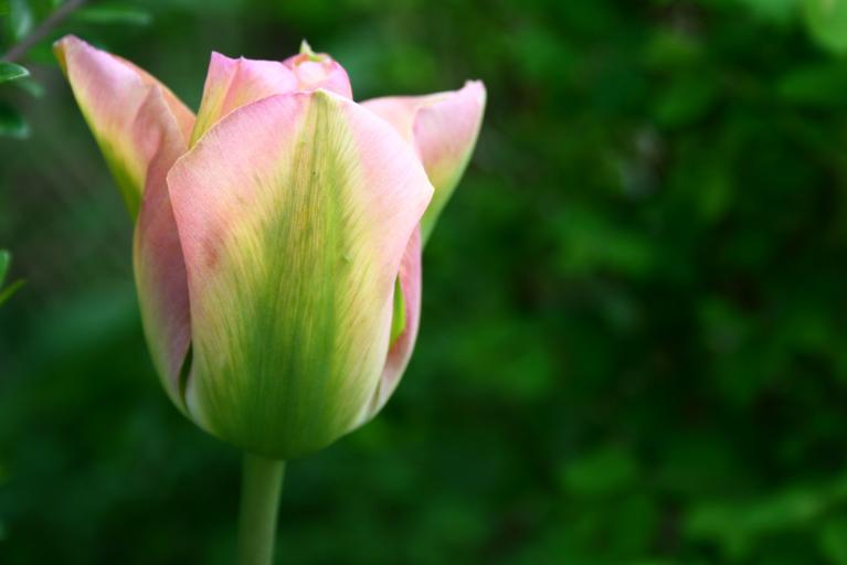 Keywords: tulip petals pink white green colorful spring garden blooming nature gardening