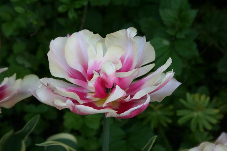 Keywords: tulip petals purple white green colorful spring garden blooming nature gardening
