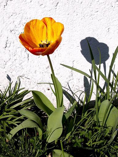 Keywords: tulip white wall shadow sunny day spring yellow beauty in nature garden nature flower