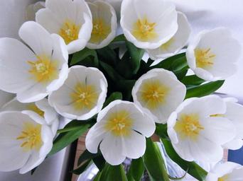 Keywords: tulips flower vase blossom fresh bouquet bloom green gift nature bunch petal decoration arrangement yellow