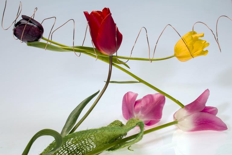 Keywords: tulips flowers wire spring yellow red pink