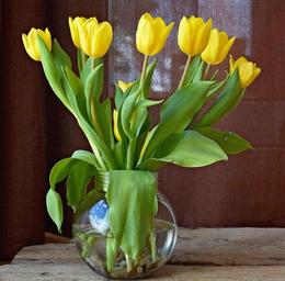 Keywords: tulips flowers yellow flowers cut flowers spring flowers bouquet yellow spring vase glass vase