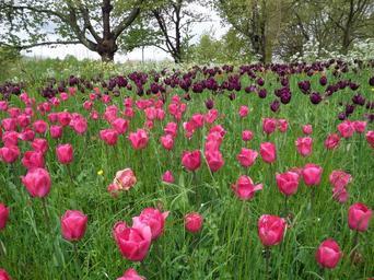 Keywords: tulips grass meadow mainau spring purple blossom bloom flower plant nature garden green violet noble tulip bloom pink