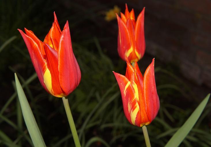 Keywords: tulips lily family flowers spring petals red yellow colorful