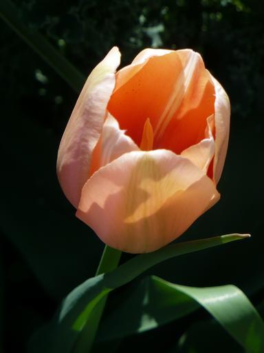 Keywords: tulips peach petals orange light bright blossom floral flowering plants bulbous ornamental blooms blooming gardens gardening