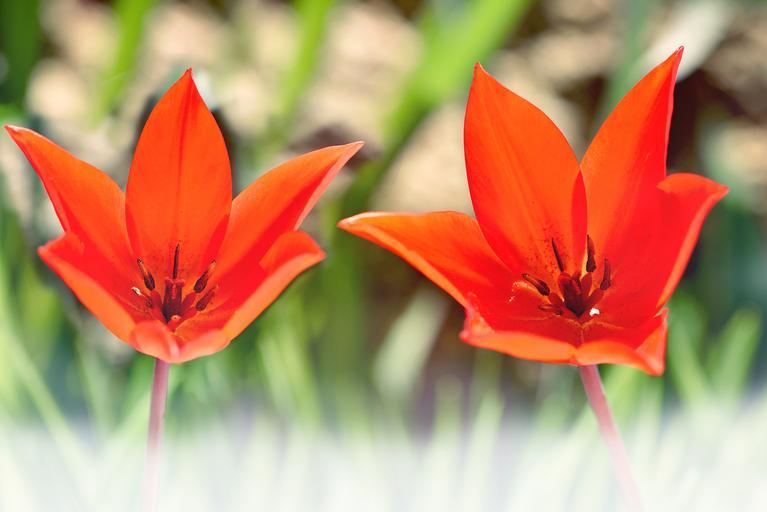 Keywords: tulips star tulips red blossom bloom flowers garden spring cut flowers spring flowers pair close