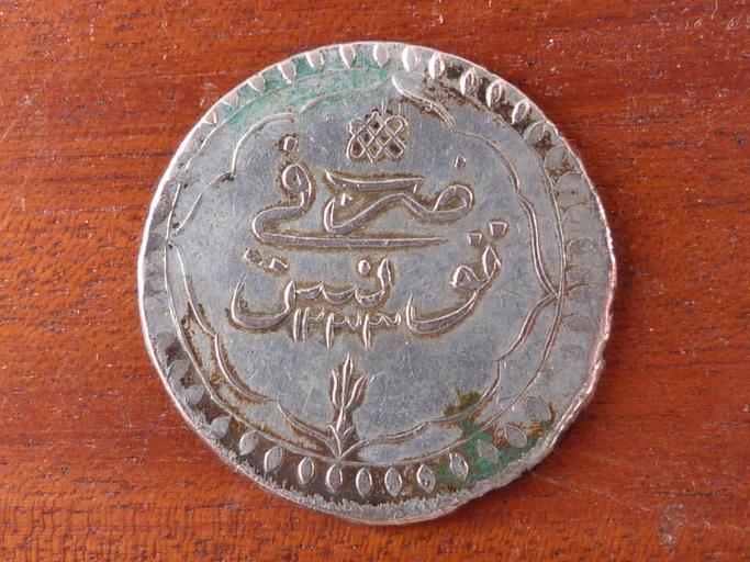 | Keywords: Tunisian rial of Mahmud II 1233 AH - 1817-1818 AD reverse.jpg fr Pièce islamique ancienne - Rial du sultan ottoman Mamoud II frappée en 1233 ١٢٣٣ à Tunis 1817/1818 - argent diamètre 33 mm poids 15 gr - vue 2 own Siren-Com 2011-04-02 ;Photograph cc-by-sa-3 0 GFDL ;Coin PD-Ottoman Images by Siren-Com Tunisian rial coins |