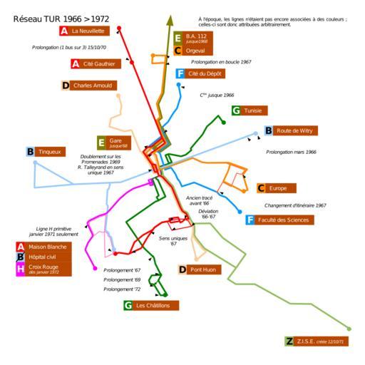 | Keywords: Tur1972.svg Réseau des Transports Urbains de Reims en 1972 et modifications depuis 1966 Buses network in Reims in year 1972 and improvements since 1966 Plus d'un siècle de transports en commun à Reims M Chenu et M Jailliard adapté par moi-même / adapted by myself 2007-11-16 Daiima <br /><div align center > toccolours width 75 cellpadding 7 +Les évolutions du réseau T U R de 1873 à 2000<br />Evolutions of the bus network in Reims from 1873 to 2000 ccccff align center Carte précédente<br />Previous map ccccff align center Carte actuelle<br />This map ccccff align center Carte suivante<br />Next map - FEFF7F align center Image Tur1962 svg FEFF7F align center Image Tur1972 svg FEFF7F align center Image Tur1976 svg - E6FF7F align center 1956 > 1962 > 1965 E6FF7F align center 1966 > 1972 > 1972 E6FF7F align center 1973 > 1976 > 1978 </div> Historical public transport maps of Reims |