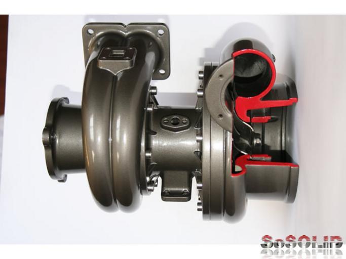 Keywords: Turbo pics 004.jpg en A 3D printed and post processed Custom Turbocharger Printed by So Solid - South Africa Own Bernard Greeff 2005 Printed on a Z-Corp 510 3D Printer Rapid Prototyping 3D printing