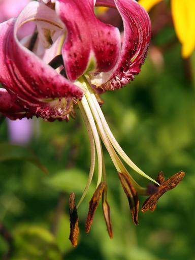 Keywords: turk's cap lily lilium martagon turk's cap lily lily flower blossom red plant flora botany flower close pistil stamp pestle pollen macro bloom petals close up