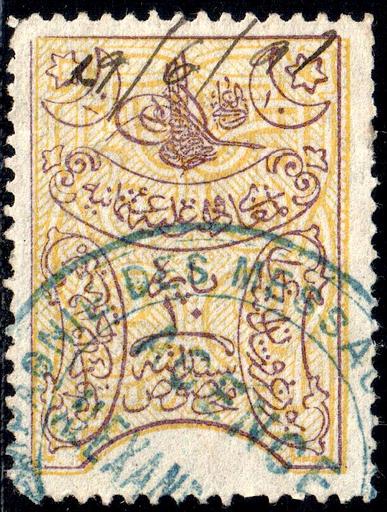 | Keywords: Turkey 1878-79 Sul4513 Alexandria.jpg en Turkey 1878-79 10pa proportional fee revenue stamp used in Alexandria 1878 1879 own scan Government of the Ottoman Empire other versions Custom license marker 2016 11 19 PD-old-100 Revenue stamps of Turkey Business rubber stamps |