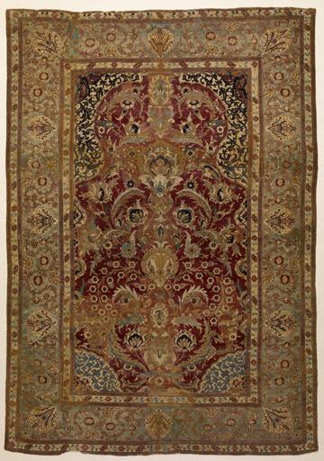 | Keywords: Turkish - Prayer Rug with Floral and Ornamental Designs - Walters 814 (2).jpg  During their daily prayers Muslims traditionally roll out small rugs to cover the ground creating a ritually clean space for their devotions Likewise the floors of mosques which are places of communal worship are covered with carpets on which Muslims perform their sequence of prayers Islamic prayer rugs vary enormously in decoration but they frequently feature a framed panel with twin columns supporting an arch that represents the mihrab or niche in the wall of a mosque indicating the direction of prayer toward Mecca The design of this 16th-century Ottoman rug depicts a beautiful floral pattern with blossoms and leaves; the main border displays medallions with tulips and hyacinths While the central arch has no columns to reflect the prayer niche the arrangement of the blossom pattern is a kind of floral translation of the architecture century 16 Early Modern knotted wool pile silk warp and weft cm 176 5 127 3 accession number 81 4 17044 Henry Walters Baltimore 1927 by purchase date and mode of acquisition unknown Walters Art Museum Henry Walters Acquired by Henry Walters 1927 Prayer Rugs The Textile Museum Washington; The Montclair Art Museum Montclair 1974-1975 The Eastern Carpet in the Western World Hayward Gallery London 1983 Beyond the Pyramids Geometry and Design in the Carpets of Egypt 1450-1750 The Textile Museum Washington 1991 place of origin Anatolia Turkey <gallery> File Turkish - Prayer Rug with Floral and Ornamental Designs - Walters 814 jpg </gallery> Walters Art Museum license 2D Islamic art in the Walters Art Museum Textiles in the Walters Art Museum Art from Turkey Ottoman carpets Prayer rugs |
