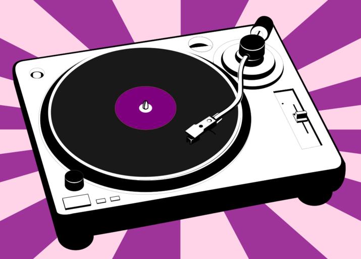 Keywords: turntable vinyl music record disco entertainment audio sound dj equipment party purple