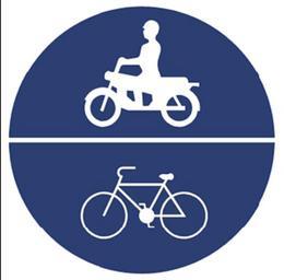 | Keywords: TW-Art068.2.png 中華民 遵行標誌遵24:道路指定腳踏車及汽缸總排氣量 滿五百五十立方公分之機器腳踏車專行(2006-11-01起定義);道路指定腳踏車及機器腳踏車專行(之前定義) Taiwanese Regulatory Sign R24 Road for Bicycles and Motorcycles with Engine Displacements of less than 550cm<sup>3</sup> definition since 2006-11-01 ; Road for Bicycles and Motorcycles Only earlier definition http //www iot gov tw/public/Attachment/55410542871 pdf 2003-09-24 gov tw 號 六十八 Article number 68 Image TW-Art069 2 png Motorcycle and cyclist path signs | ||||