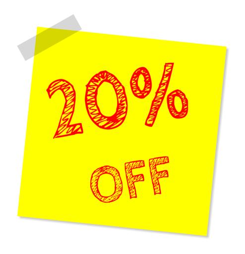 Keywords: twenty percent off discount sale offer marketing percentage promotion reduction shopping rebate percent price clearance retail bargain